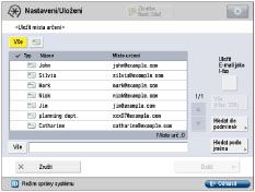 E-mailovou adresu získanou hledáním v adresáři na síti za použití serverů LDAP (Lightweight Directory Access Protocol) je možné uložit.