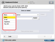 Organizace/organizační jednotka lze použít jako kategorie hledání, pouze pokud byly tyto informace uloženy na serveru LDAP. To, zda podrobné hledání podle organizace/organizační jednotky bude vůbec možné provést, závisí na typu aplikace na serveru a na tom, zda byly na serveru LDAP uloženy typy atributů. |