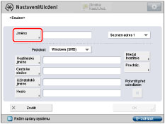 Nastavíte-li volbu [Přepnout jazyk/klávesnici] na Zap v [Možnosti] (Nastavení/Uložení), může se stát, že se hostitelské jméno a cesta ke složce nezobrazí správně a nebude k nim možné procházet. |