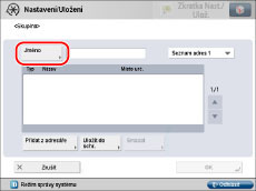 Chcete-li uložit skupinovou adresu, musíte předem uložit místa určení, jako např. e-mailové adresy, I-faxové adresy a adresy souborových serverů. |