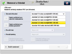 Vyberete-li [Acrobat 10.0 nebo ekvivalentní], při výběru úrovně šifrování se zobrazí [Acrobat 10.0 nebo ekvival./AES 256 bitů].