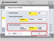 Zvýšením hodnoty pro <Úroveň rozpoznání grafiky> zvětšíte i velikost dat. Proto doporučujeme, abyste nejprve použili nastavení [Normální], a teprve v případě, že výsledek neodpovídá požadavkům, zkusili zvýšit úroveň rozpoznání na [Průměrná] nebo [Vysoká]. |