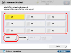 Vyberte tlačítko ([M1] až [M9]), do něhož chcete uložit nastavení → stiskněte [Uložit].