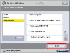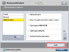 Zadejte nastavení → stiskněte [Zavřít].