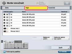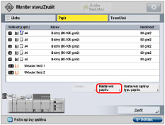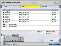 Na displeji stroje lze kontrolovat podrobné informace o papíru. Do systému stroje můžete také uložit/nastavit typ papíru, který chcete ukládat do zdroje papíru, jako je např. zásuvka na papír.