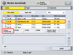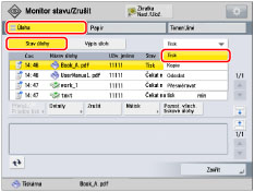 [Přerušit a Tisknout]: | Aktuálně zpracovávaná úloha se pozastaví a vytiskne se vybraná úloha. |