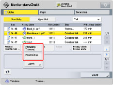 [Prioritní tisk]: | Po dokončení aktuálně zpracovávané úlohy se vytiskne vybraná úloha. |