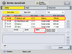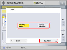 Po zhotovení ukázkového výtisku stroj automaticky zpracuje tiskovou úlohu. Potřebujete-li upravit nastavení, stiskněte [Zrušit] nebo [Pozast. všech. tiskové úlohy] a poté proveďte potřebné nastavení. |