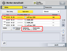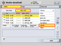 [Uložit místa určení]: | Umožňuje uložit vybranou úlohu jako místo určení. Výběrem [Adresář] nebo [Rychlá volba] vyvolejte obrazovku Nastavení/Uložení. (Viz „Uložení míst určení“ nebo „Ukládání tlačítek volby na jeden dotek.“) Je-li nastaven [PIN adresáře] v [Nastavit místo určení] (Nastavení/Uložení), zobrazí se obrazovka požadující zadání hesla. (Viz „Nastavení adresáře.“) |