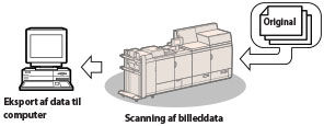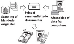 Scan og gem-funktionen lader dig gemme dokumentdata, der er blevet scannet med en scannerenhed eller lavet på en computer. Gemt data kan til enhver lejlighed printes eller flettes med data, der er gemt separat eller er fremstillet på en computer til samtidig behandling.