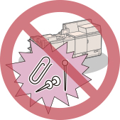 Pas på ikke at tabe papirclips, hæfteklammer eller andre metalgenstande inde i maskinen. Hvis sådanne materialer kommer i kontakt med højspændingsområderne i maskinen, kan det føre til brand eller elektrisk stød.