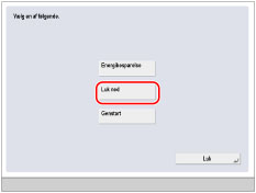 Selvom maskinen er i dvale kan den modtage og printe dokumenter fra en pc. I-faxdokumenter kan også modtages, når maskinen er gået i dvale. Du kan lukke maskinen ned fra Remote UI med brug af Fjern-nedlukning (Remote Shutdown). For flere informationer kan du se "Lukning af maskinen fra Remote UI" Du kan også benytte Auto nedlukning til at lukke maskinen ned med. For flere informationer kan du se "Automatisk nedlukningstid" |