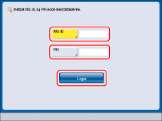 Hvis Administration af afdelings-ID ikke er valgt, vises skærmbilledet Log ind ikke. For flere informationer om administration af afdelings-ID skal du se "Administration af Afdelings-ID'er" |