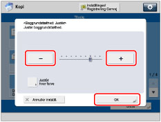 Tryk på [-] og [+] for at justere baggrundstætheden → tryk på [OK].