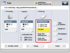 Angiv efter finishing-form. | 3-vejs- trimning | Bredde på finishing-formatet + 6,5 mm til 49,5 mm (182,0 mm til 228,6 mm) | Bredde på finishing-formatet + 13,0 mm til 79,0 mm (257,0 mm til 320,0 mm) |