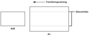 Når papir med større bredde bruges, når der er kopieret eller printet 100 eller flere ark med mindre bredde (eksempelvis hvis du bruger A3 efter A4R), kan der opstå glansstriber på begge kanter i fremføringens retning. Herudover kan der forekomme pletter med ujævn glans i områder med høj tæthed på det printede kraftige eller coatede papir. I dette tilfælde kan streger og pletter med ujævn glans reduceres ved at genopfriske fikseringsrullen og rengøre dens overflade.