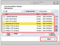 Hvis der på skærmen vises en meddelelse, der beder dig om at justere papirstyrene, skal du justere deres bredde → angiv papirstørrelsen → tryk på [OK]. ![]() Hvis du laver en fejl, når du indtaster værdier, skal du trykke på → indtast de korrekte værdier.Før du kan registrere et papirformat lagret i en formatknap ([S1] til [S5]), skal du have lagret det uregulære papirformat på formatknappen. For anvisninger om lagring af uregulære papirformater skal du se "Registrering/redigering/sletning af brugerdefinerede papirtyper" |