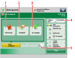 3 | Hvis modtageren, du ønsker at angive, ikke er gemt i en Adressebog Se følgende detaljerede fremgangsmåder, afhængigt af den adresse eller server der sal angives. |