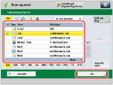 (taltaster). Hvis du trykker på [Adresser uden adgangsnummer], vises de modtagere, der ikke bliver styret med et adgangsnummer.BEMÆRK! |