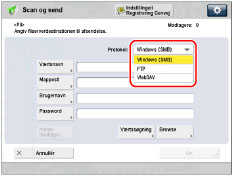 [Værtsnavn]: | Tryk på [Værtsnavn] → angiv enten IP-adresse, FQDN eller NetBIOS-navn → tryk på [OK]. |