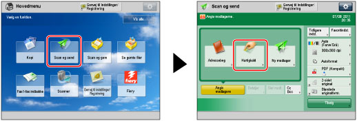 For at udnytte denne funktion, skal du først registrere modtagere på hurtigkaldstaster. (Se "Lagring/redigering/sletning af hurtigkaldstaster".) |