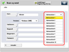 Slår du [Skift Sprog/tastaturskift Til/Fra] 'Til', vises værtsnavnet og mappestien på filserveren måske ikke korrekt, og du kan muligvis ikke gennemse der. (Se "Aktivering af sprog/tastaturskift".) |