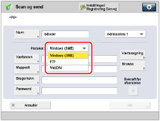 For flere informationer om mulige protokoller kan du se "Angivelse af en filserver med tastaturet" |