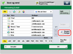→ [Scan og send] → [Adressebog].