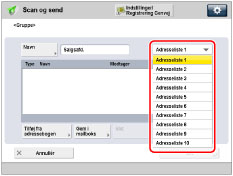 Tryk på dropdown-listen → vælg en adresseliste fra 1 til 10.