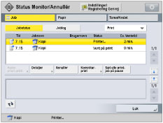 Hvis [Administration af Afdelings-ID] eller [Begræns funktioner] for [Administration af Afdelings-ID] er indstillet til 'Til', kan startskærmen være anderledes end skærmen, der er indstillet til at vises ved start. Hvis [Administration af Afdelings-ID] er indstillet til 'Til', og hvis en funktion begrænset af Begræns funktioner er indstillet til standardskærmen, vises hovedskærmbilledet ved start. (Hvis [Administration af Afdelings-ID] er indstillet til 'Til', er [Kopi] begrænset af Begræns funktioner.) For at vise de funktioner du har indstillet for standardstartskærmen: Vælg funktionen på hovedmenuskærmen → indtast afdelings-ID'et/PIN-koden på log ind-skærmen. Hvis alle funktioner i [Begræns funktioner] for [Administration af Afdelings-ID] er indstillet til 'Til', vises skærmbilledet Log ind ved start, også selvom du indstiller [Åbn Status Monitor/Annul.] til 'Til'. Hvis du trykker på , vises skærmbilledet Statusmonitor/Annullér. (Hvis du vil vise skærmbilledet Statusmonitor/Annullér, er det ikke nødvendigt med afdelings-ID/PIN-kode.)For flere informationer om administration af afdelings-ID skal du se "Angivelse af Administration af afdelings-ID" |