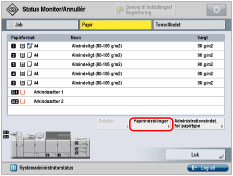 Du kan kontrollere de detaljerede papirinformationer. Du kan også registrere/angive papirtypen, der skal lægges i en papirkilde, som f.eks. en papirskuffe.