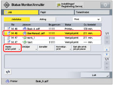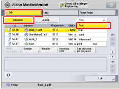 [Afbryd med hasteprint]: | Afbryder det igangværende job og printer det valgte job. |