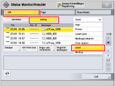 [Angiv som sendemodt.]: | Viser et skærmbillede, hvor adressen på det valgte job, er indtastet. Kontrollér adressen → tryk på [OK] for at vise skærmbilledet Send. |