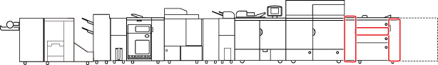 Dette afsnit beskriver, hvordan du fjerner et langt ark, der sidder fastklemt i POD Deck-D + POD Buffer Unit-A. Placeringen af POD Deck-D + POD Buffer Unit-A er vist på følgende illustration.