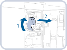 Rul det fastklemte papir på den plads, der er gjort tilgængelig ved at åbne D-C1-styr, og træk det ud.