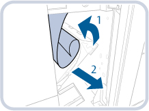 Skub det fastklemte papir, så langt ind det kan komme, med hænderne i papirfremføringsretningen på den plads, der er gjort tilgængelig ved at åbne D-C1-styret.