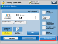 Om het afdrukken te annuleren, drukt u op [Annuleren]. U kunt het afdrukken niet annuleren door op te drukken.Om de volgende afdrukopdracht te reserveren drukt u op [Sluiten] → volg de procedure voor het reserveren van een afdrukopdracht. (Raadpleeg "Reserveren van opdrachten".) |