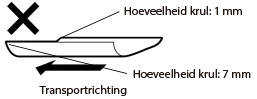 Acceptabele krulwaarden wanneer de krul loodrecht op de aanvoerrichting staat