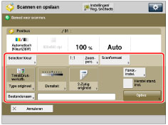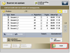 U kunt maximaal 999 pagina's per keer scannen en opslaan. Als met de aanvoer dubbelzijdige pagina's worden gescand, kunt u maximaal 1.000 pagina's opslaan. Zodra het maximum aantal te scannen originelen is bereikt, verschijnt een melding waar u de scans wilt opslaan. |