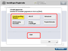 Als u [Inst./Regi. waarde] en [Adresboek] niet gelijkertijd herstelt, worden de instellingen in [Instel. URL TX] voor [Instellen Fax/I-Fax postbus] en [Postbusinstellingen] wellicht verwijderd. |