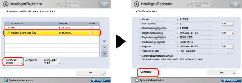Selecteer 'Device Signature Key' → druk op [Certificaat details] → [Certif. contr.].