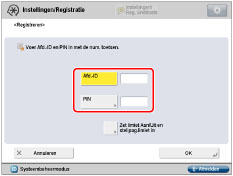 Onjuiste waarden kunt u wissen door op te drukken.Indien u geen PIN instelt, kunt u de machine gebruiken door alleen het Afdeling-ID in te voeren. |