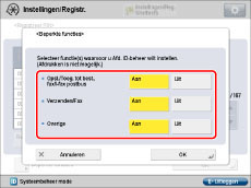 Als [Afdeling-ID beheer] is ingesteld op [Aan], gelden er beperkingen voor de volgende functies, ongeacht de instellingen van de beperkingsfuncties. ![]() |
