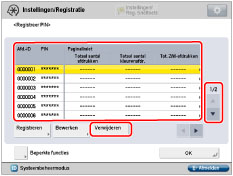 om de afdeling weer te geven waarvan u de pincode wilt wijzigen → selecteer de afdeling → druk op [Bewerken].