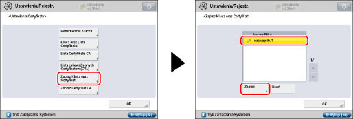 Naciśnij na [Zapisz Klucz oraz Certyfikat] → wybierz plik do zarejestrowania → naciśnij na [Zapisz].