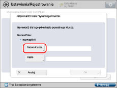 Plik pary klucza oraz plik certyfikatu serwera utworzone na komputerze mogą być instalowane w urządzeniu za pomocą przeglądarki internetowej (Zdalny interfejs użytkownika). Procedura rejestrowania zainstalowanych plików w urządzeniu za pomocą panelu sterowania, wygląda następująco: