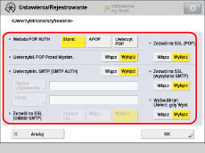 Jeżeli użytkownik chce wysyłać zaszyfrowane dane, należy włączyć opcję <Zezwól na SSL (POP)> lub <Włącz SSL (Wysyłanie SMTP)>.