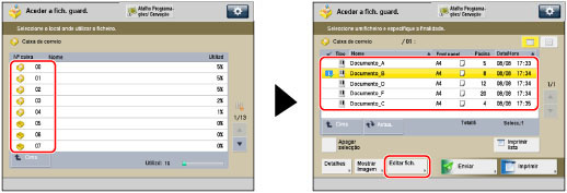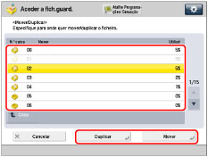 O nome do ficheiro movido ou duplicado é igual ao do ficheiro original. Se a máquina entrar no modo Sleep enquanto estiver a mover ou a duplicar ficheiros, a máquina só consegue mover ou duplicar os ficheiros que foram processados até à altura em que entrou no modo Sleep. |