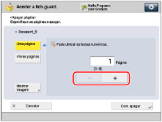 Carregue em [-] ou [+] para especificar a página que pretende apagar.