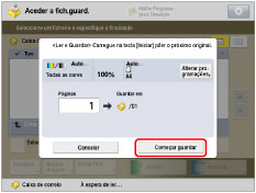 Se aparecer o ecrã a seguir, depois da leitura do último lote de originais, carregue em [Começar guardar].